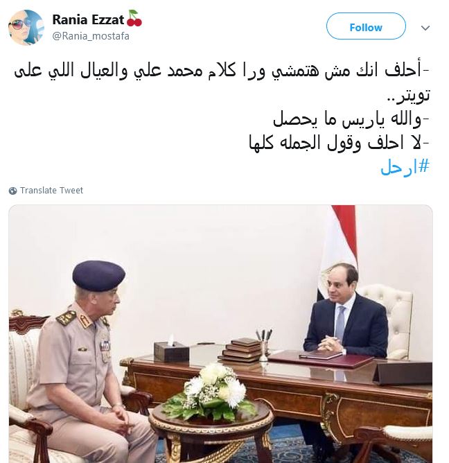 تسديد الدين…هذا وقته#ارحل#ارحل_ياسيسي #الشعب_يريد_اسقاط_النظام #sisi_out pic.twitter.com/XRBf6kBwKa— Haytham Abokhalil هيثم أبوخليل (@haythamabokhal1) September 20, 2019