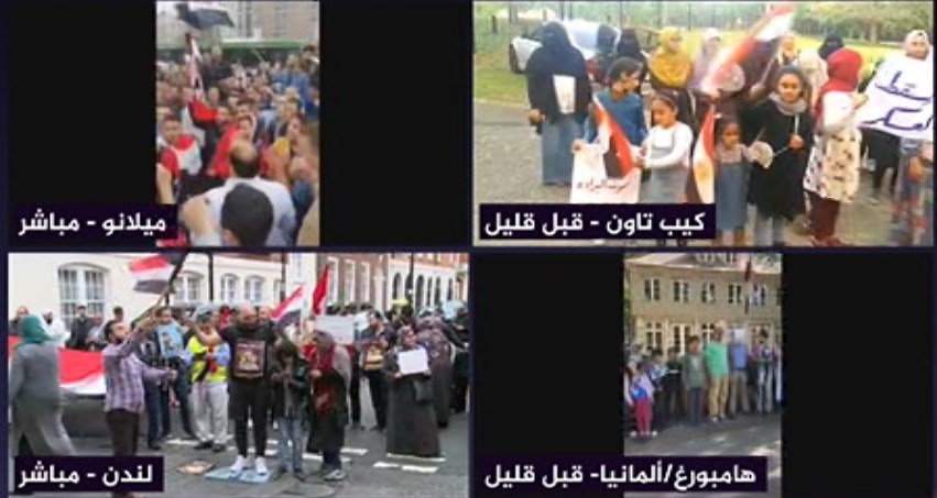 وشهدت مدن ميلانو في إيطاليا وبرلين في ألمانيا وكيب تاون بجنوب إفريقيا، وأمستردام في هولندا، ولندن في بريطانيا تظاهرات حاشدة للمطالبة برحيل السيسي.