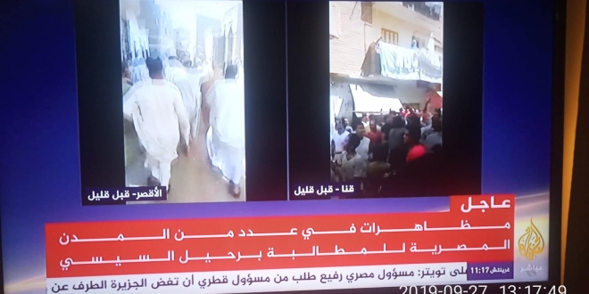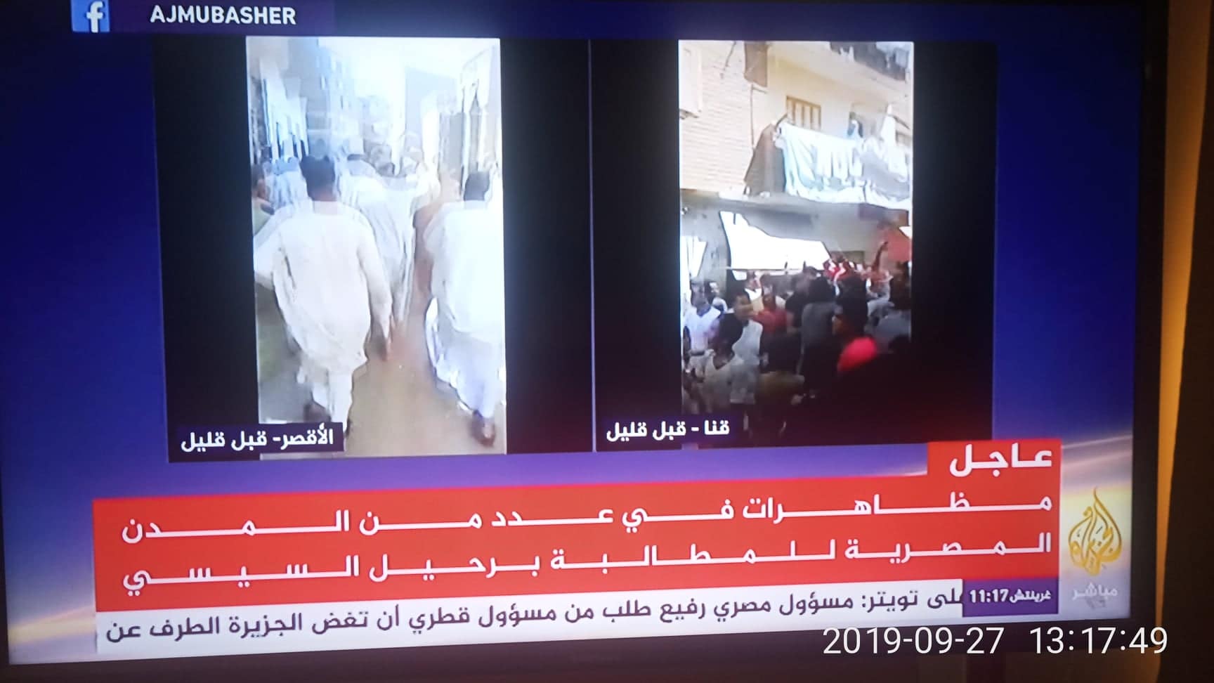 من صعيد مصر انتفض المواطنون في الأقصر وقنا في مظاهرات تطالب برحيل السيسى وعصابته مع بدء مظاهرات "جمعة الرحيل"، رفضا للفقر والظلم المتصاعد والفساد الذى اجتاح مؤسسات البلاد.