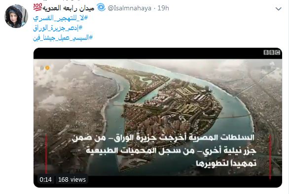 وارفق حساب ميدان رابعة العدوية فيديو لمأساة الوراق يظهر فيها تضارب تصريحات السيسي التي تطالب بإخلاء المدينة باعتبارها محمية طبيعية وقرار حكومته برئاسة وزير الإسكان الانقلابي السابق مصطفى مدبولي بنزع صفة المحمية الطبيعية عن الوراق.