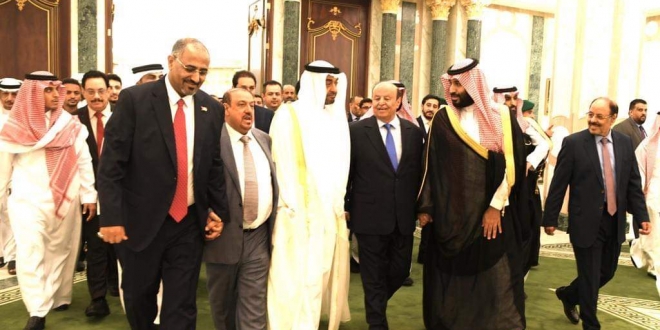 اعتبر مراقبون أن حضور محمد بن زايد، أمس، بمشهد إصراره على مصافحة اليمنيين الموالين له فيما يسمى بـ”المجلس الانتقالي” أولًا، تاركًا ابن سلمان والرئيس هادي ينتظران قبلاته الحارة لهما، إنما هو علامة على ادعاء انتصاره في “اتفاق” ينتقص من وحدة البلاد، ويعلن قهر ولي عهد أبو ظبي الذي انغمست يده في دماء اليمنيين لقطاع عريض من أنصار الشرعية في اليمن، في الوقت الذي يسيطر فيه الحوثيون على نحو 26 مديرية من اليمن، أغلبها في اليمن الشمالي، متركزين في صعدة حيث مقرهم الرئيسي وصنعاء.