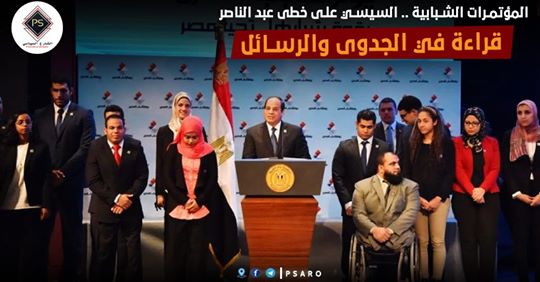 ونشرت صفحة “الشارع السياسي Political Street” دراسة بعنوان “المؤتمرات الشبابية.. السيسي على خطى عبد الناصر.. قراءة في الجدوى والرسائل”، قالت إن السيسي عقد 12 مؤتمرًا، بعد انقلاب 30 يونيو 2013م على المسار الديمقراطي والإطاحة بالرئيس محمد مرسي، أول رئيس مدني منتخب في تاريخ مصر الحديث والمعاصر.