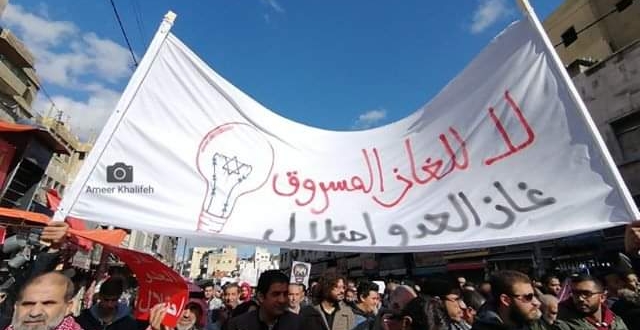 وفي الأردن، شارك آلاف الأردنيين، في المسيرة الشعبية الحاشدة التي انطلقت من أمام المسجد الحسيني بالعاصمة عمان، رفضا لاتفاقية الغاز الموقعة مع سلطات الاحتلال الصهيوني، وطالب المشاركون بضرورة إقالة الحكومة ومحاسبة المسئولين والموقعين على الاتفاقية.