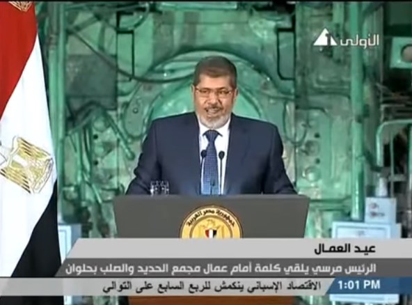 “انتهى عهد بيع القطاع العام.. والعمال هم عصب مصر.. واللي بيطلب من غيره لا يمتلك إرادته.. لازم ننتج غذاءنا.. لازم ننتج دواءنا.. لازم ننتج سلاحنا”، هكذا بدأ الرئيس الشهيد محمد مرسي حديثه لعمال مصر في عيدهم عام 2013 من داخل مجمع الحديد والصلب بحلوان لترد جموع العمال التحية بهتاف “بنحبك يا مرسي بنحبك يا مرسي”.
