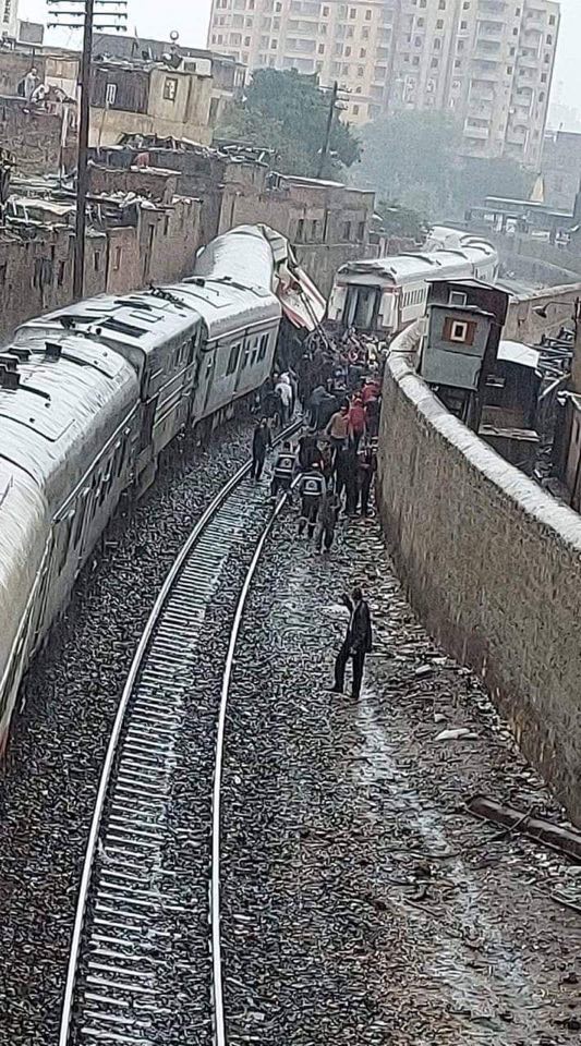 وكان القطار 989 القادم من أسوان قد اصطدم بقطار 991 القادم من سوهاج في منطقة إمبابة. وتدافع نشطاء لإنقاذ الضحايا والذين كان أغلبهم مصابين إلى الآن.