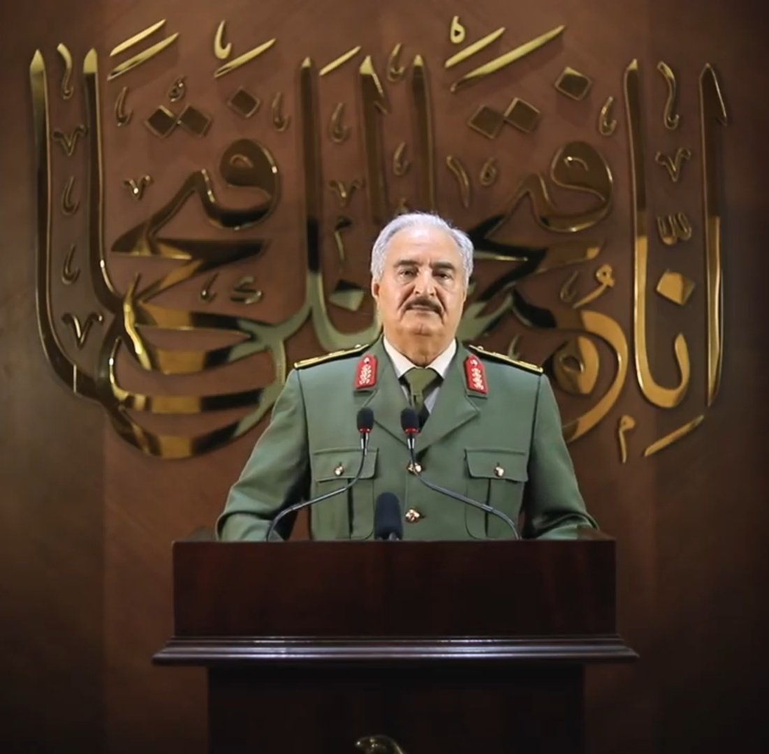 خطاب حفتر- الذي جاء على غرار ما فعله قائد انقلاب مصر عبد الفتاح السيسي، بطلب "تفويض" وهمي، ثم إعلان قبوله التفويض، وتنصيب نفسه حاكمًا عسكريًا لليبيا بدون أي سند شرعي، والذي يُعتقد أن الإمارات التي تشرف على دعمه، وهي من دفعته له- جاء ردًا على هزائمه الأخيرة واحتمالات خسارته الحرب.
