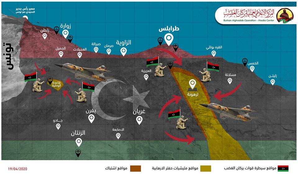 فقد كشف آمر اللواء الأول مشاة، المقدم مصطفى المجدوب، أن قوات الجيش الليبي التابع لحكومة الوفاق تستعد لشن هجوم كبير للسيطرة على محاور جنوب طرابلس ومدينة ترهونة، آخر معاقل اللواء المتقاعد خليفة حفتر غرب ليبيا.