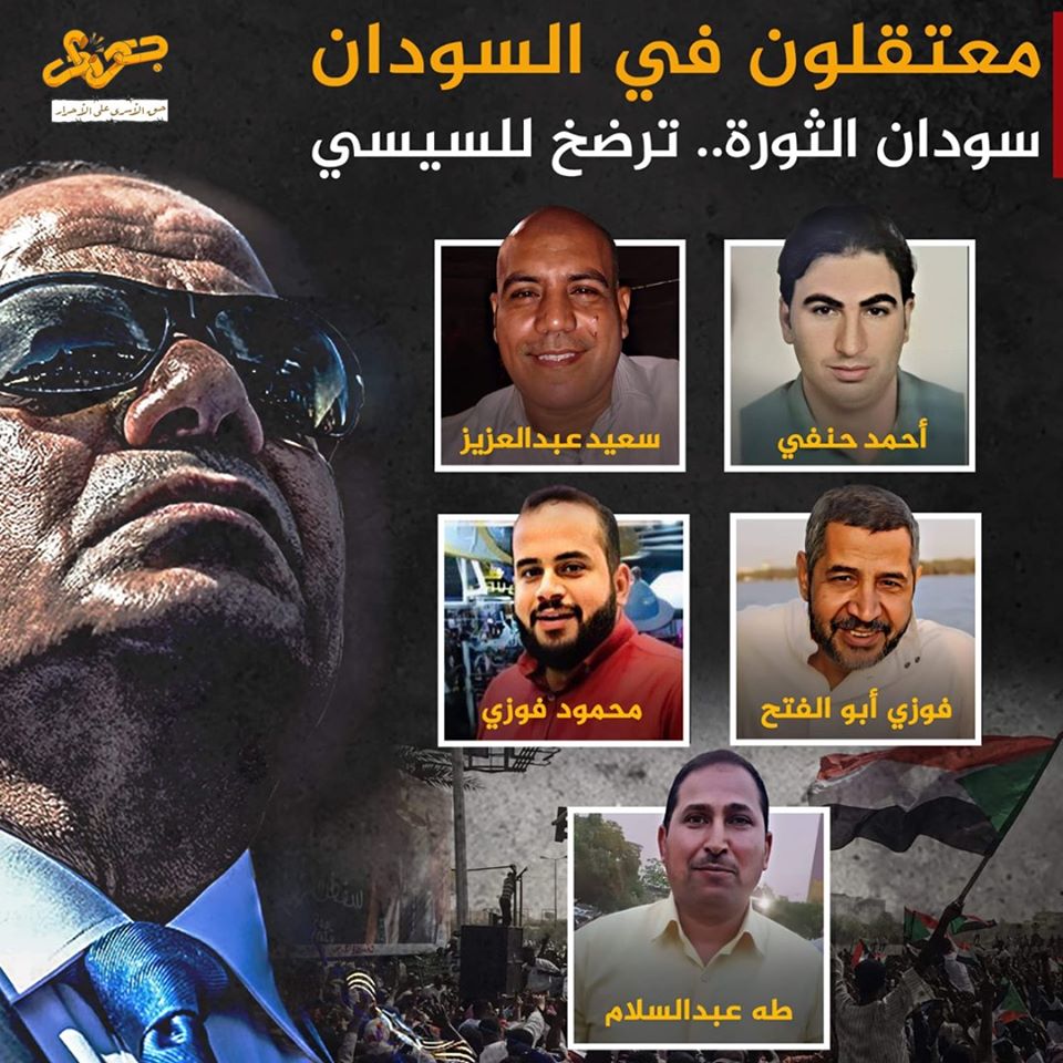 وأشاروا إلى أن هؤلاء المعتقلين تم اعتقالهم على إثر حملات مداهمة واعتقالات في صفوف المصريين المقيمين في السودان، استهدفت المعارضين السياسيين لنظام السيسي بإملاءات من المخابرات المصرية، ومتابعة شخصية من عباس كامل، طالت العشرات وسط تكتم إعلامي شديد.