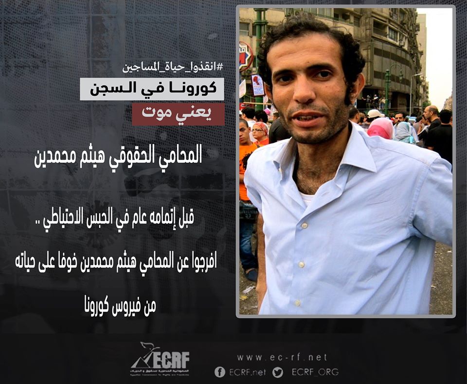 كما طالبت المفوضية المصرية للحقوق والحريات بالإفراج عن المحامي هيثم محمدين؛ خوفًا على حياته من فيروس كورونا، قبل إتمامه سنة في الحبس الاحتياطي .