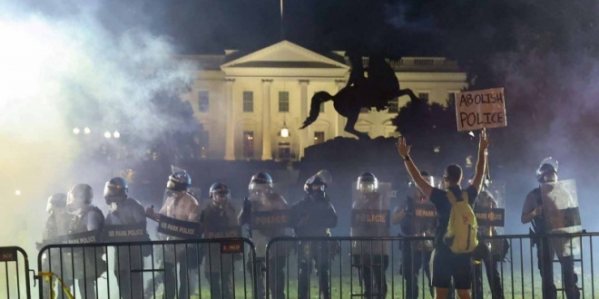 وتطورت الاحتجاجات المستمرة منذ مقتل المواطن الأمريكي جورج فلويد، يوم 25 مايو الماضي، حيث تم تخريب المباني الفيدرالية، واندلعت الاشتباكات بين عناصر جهاز المخابرات والمتظاهرين خارج البيت الأبيض. واندلع حريق هائل في مبنى متعدد الطوابق على مرمى حجر من المجمع الرئاسي.