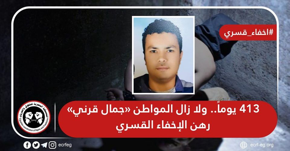 وأدانت استمرار جريمة الإخفاء القسري بالسويس للشاب "جمال محمد قرني مرسي"، 33 عاما، لليوم الـ413 على التوالي، منذ اعتقاله يوم 18 أبريل 2019، من محافظة السويس، دون سند قانوني، واقتياده لجهة مجهولة حتى الآن.