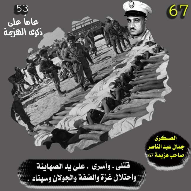 في ذكراها الـ53، تمر سحب النكسة محملة بميراث تعبوي طغى على عقلية بسطاء الناس، وحوّل وعيهم إلى التغني بأمجاد الزعيم الذي أضاع كل شيء وبقي وحيدًا فوق تلال جماجم من 20 ألف مصري وعربي، جراء صنيعته الهزيمة، والتي نجح أحمد سعيد، مذيع إذاعة صوت العرب، في تغيير المفهوم وفق توجيهات مخابرات صلاح نصر إلى “نكسة”، في وقت كان الصهاينة أقرب ما يكون من القاهرة والمسجد الأقصى والضفة وسيناء وأجزاء واسعة من الضفة الغربية.