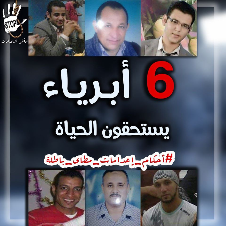 فيما جددت حملة "أوقفوا الإعدامات" المطالبة بالحياة لـ6 أبرياء، صدرت ضدهم أحكام مسيسة بالإعدام بهزلية أحداث مطاي.