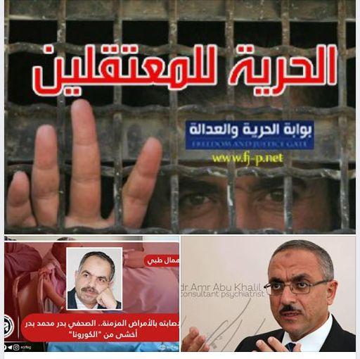 يتعرض الكاتب الصحفي «بدر محمد بدر»، عضو نقابة الصحفيين، للإهمال الطبي المتعمد في محبسه بسجن قوات الأمن بالكيلو عشرة ونصف، حيث يعاني من أمراض الكبد والسكر وكانت لديه شكوى من القلب ولم يتم علاجه.