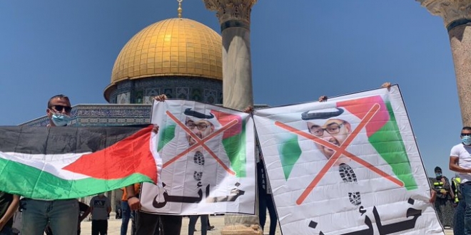 وقال الاتحاد، في بيان، إن "اتفاق نتنياهو، ومحمد بن زايد، خيانة عظمى، ومكافأة كبرى لجرائم المحتلين الصهاينة بالقدس الشريف وبحق الفلسطينيين". وأضاف، أن الاتفاق، الذي تضمن تعليق إسرائيل ضم أجزاء من الضفة الغربية، بمثابة "اعتراف ضمني بحق إسرائيل في بسط سيادتها على الضفة المحتلة".