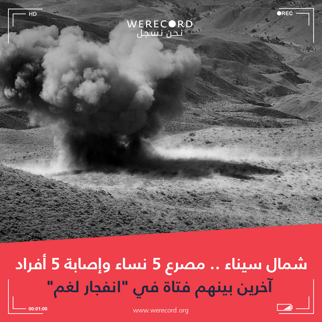 وذكر الفريق الحقوقي أنه في إطار تزايد عدد القتلى والمصابين من أبناء قرية أقطية التابعة لمركز بئر العبد بمحافظة شمال سيناء، انفجر مساء أمس السبت، لغم أدى إلى مقتل 5 نساء من أسرة واحدة تتراوح أعمارهن بين 18 و60 عاما. والضحايا هن: مديحة صالح، فاطمة سلمان، شريفة عبدالمالك، صبيحة عبدالمالك، وفاطمة عبدالمالك.