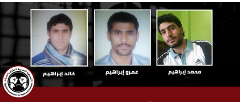 وهم "خالد بهاء إبراهيم" تم اعتقاله يوم 20 يونيو 2017 ، وأخويه "محمد " وتم اعتقاله بتاريخ 28 يونيو 2017 و "عمرو " تم اعتقاله يوم 26 يونيو 2017 دون سند من القانون واقتادتهم لجهة مجهولة حتى الآن دون ذكر الأسباب.
