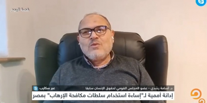 وأشار الدكتور أسامة رشدي، عضو المجلس القومي لحقوق الإنسان سابقا، إلى أن الشعب المصر ثار على نظام مستبد حكم 30 عاما بقانون الطوارئ وزور الانتخابات واعتمد التعذيب كمنهجية ، والانقلاب العسكري في 3 يوليو يمثل النسخة الأسوأ من حكم المخلوع مبارك.
