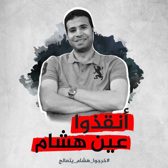 وكتب آخر: "هشام أصيب بالجلوكوما أو المياه الزرقاء، في عينيه وتدهورت الحالة، ويحتاج إلى إجراء جراحة عاجلة حتى لا يفقد البصر تماما. هشام يعاني أيضا من تكلس في عظام الأذن الوسطي (عظمة الركاب) ما يجعل من حياته داخل السجن أمرا مستحيلا".