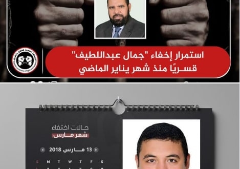 كما تخفي قوات الانقلاب جمال حسن أحمد عبداللطيف قسريا منذ 24 يناير الماضي بعد اعتقاله من منزله واقتياده إلى جهة مجهولة ولم يستدل على مكان احتجازه حتى الآن.