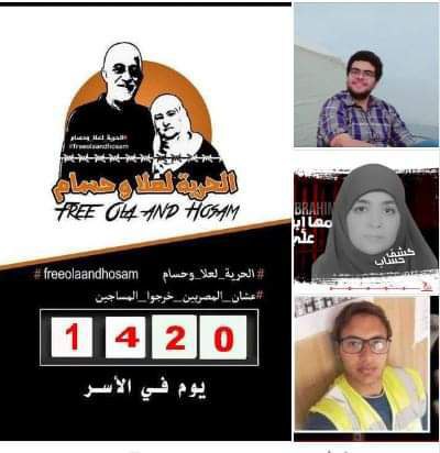 وقبل أيام كتب الشاعر عبدالرحمن يوسف عبر حسابه على تويتر: "النهاردة فات 1420 يوم على اعتقال علا وحسام !1420.. سجن بلا ذنب.. ولا جريمة.. ولا محاكمة.. ولا زيارة.. 1420 يوم انتقام شخصي.. وتصفية حسابات سياسية.. 1420 يوم اعتقال بلا أي حقوق حتى طبقا للائحة السجون المصرية ، متى تنتهي هذه المأساة"؟