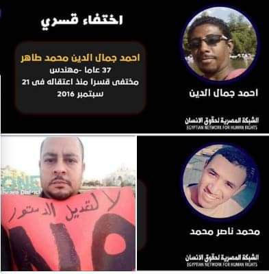 وثقت "الشبكة المصرية لحقوق الإنسان" استمرار جريمة إخفاء المهندس أحمد جمال الدين محمد طاهر، للعام الخامس على التوالي حيث تتواصل معاناة أسرته منذ أن علمت بخبر اعتقاله مساء يوم 21 سبتمبر 2016 من أحد الأكمنة بشوارع مدينة السادس من أكتوبر بمحافظة الجيزة واقتياده لجهة مجهولة حتى الآن.