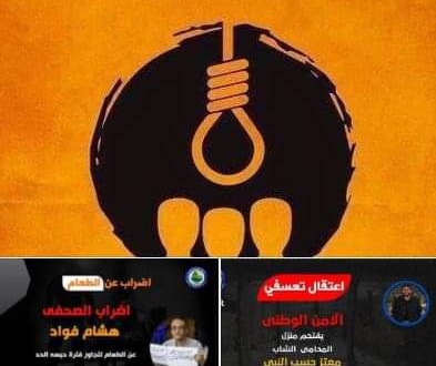 إلى ذلك يواصل المعتقل الصحفي هشام فواد إضرابه عن الطعام لتجاوز فترة حبسه الحد الأقصى من الحبس الاحتياطي عامين منذ يوم السبت الماضي 10 يوليو الجاري.