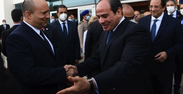 دعا عبدالفتاح السيسي قائد الانقلاب العسكري إلى ضرورة الحفاظ على التهدئة بين الجانبين الفلسطيني والإسرائيلي وذلك عقب لقاء جمعه برئيس الوزراء الإسرائيلي نفتالي بينيت في مدينة شرم الشيخ.