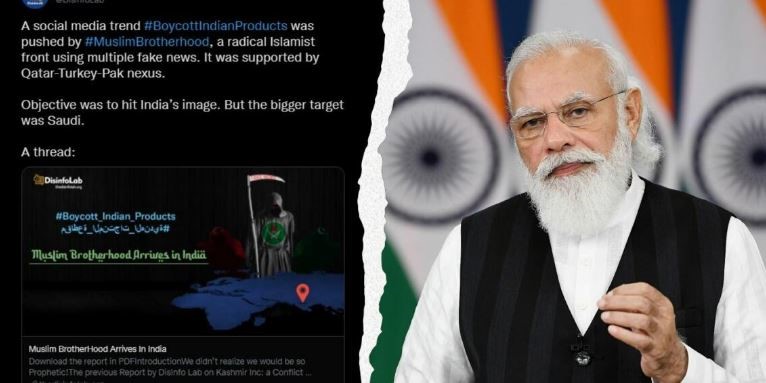 واستند التقرير إلى تقرير نشره مركز " Disinfo Lab" معتبرا أن أجندة الإخوان المسلمين مناهضة للهند، وأن جماعة الإخوان المسلمين هي من أطلقت الوسوم على وسائل التواصل الاجتماعي ومنها "تويتر" وأنها تدفع باتجاه "إيذاء المصالح الاقتصادية والإستراتيجية الهندية".