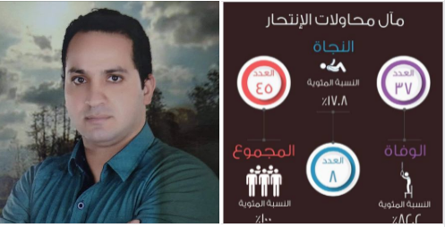 رصدت مؤسسة "بلادي جزيرة الإنسانية" 45 محاولة للانتحار داخل مقار الاحتجاز خلال الفترة من أغسطس 2013 وحتى أغسطس 2021 وأدت أغلبها إلى الوفاة بواقع 37 حالة من بين المحاولات المرصودة بنسبة 82.2%.