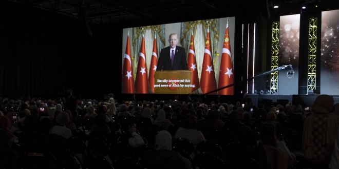 جاء ذلك في رسالة تلفزيونية بُثت في مؤتمر جمعية المسلمين الأمريكيين والدائرة الإسلامية لأمريكا الشمالية في شيكاغو يوم الثلاثاء، أحد أكبر المؤتمرات الإسلامية التي تعقد سنويا في أمريكا الشمالية، كما سلط أردوغان الضوء على أهمية الوحدة والإيجابية بالنسبة للمسلمين.