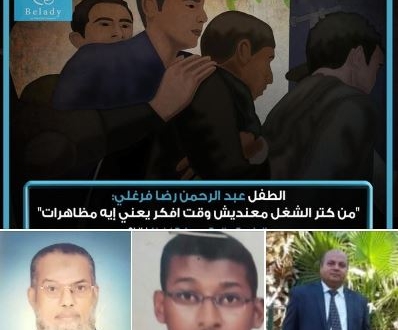 فيما وثقت مؤسسة "بلادي جزيرة الإنسانية" ما يحدث من انتهاكات ضد عبد الرحمن رضا فرغلي، من محافظة السويس، والذي تم اعتقاله مطلع يناير 2020، وهو الذي لم يكمل  16 عاما وقت القبض عليه دون جريمة.