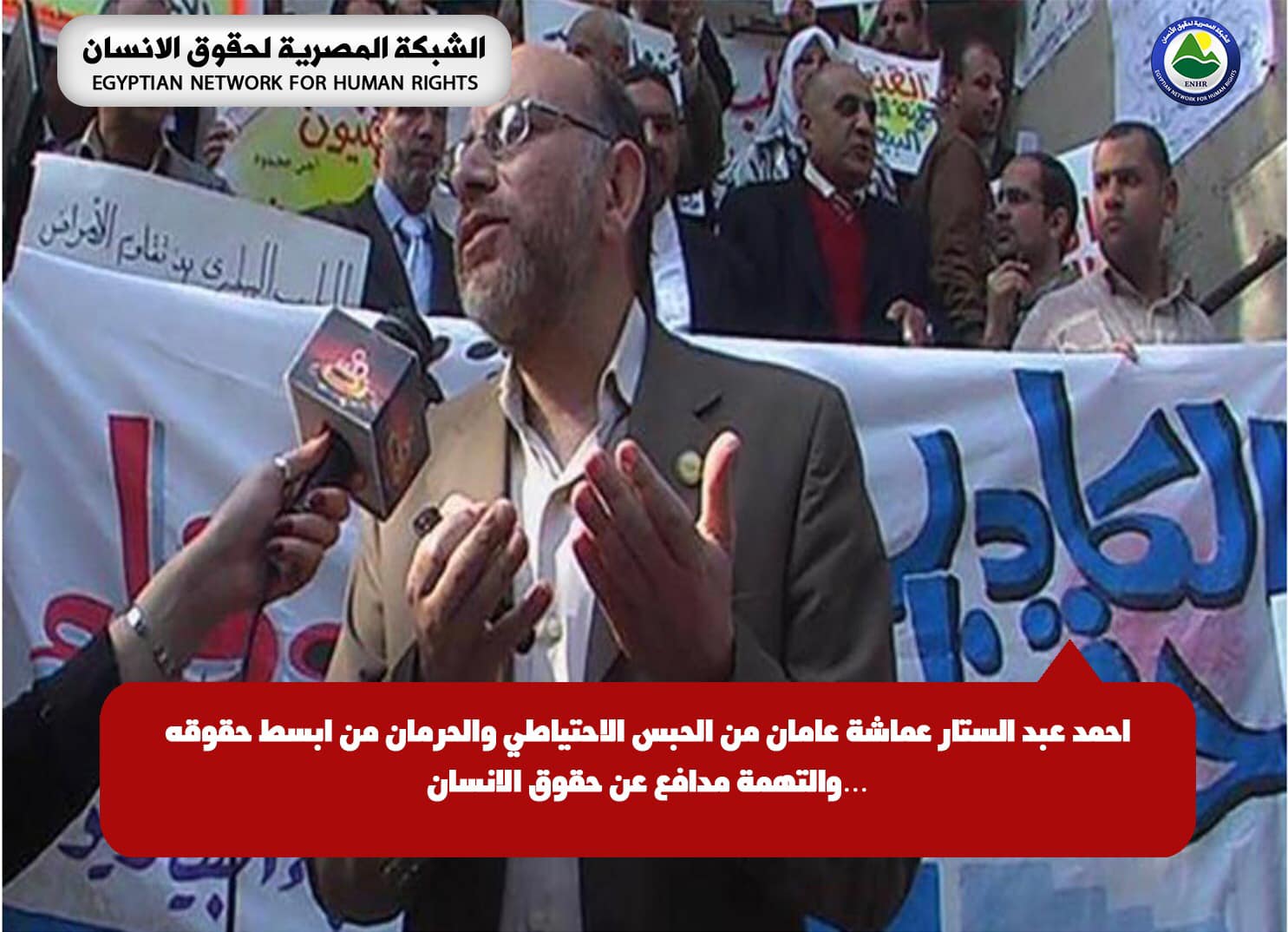 وأضافت في تقرير صادر عنها بالتزامن مع مرور عامين من الحبس الاحتياطي والحرمان من أبسط الحقوق الإنسانية للدكتور أحمد عبد الستار عماشة، 61 عاما، الناشط الحقوقي وعضو حركة كفاية، و نقيب الأطباء البيطريين سابقا بدمياط ، أن ممارسة التعذيب على نطاق واسع وفي غياب تام لدور النيابة العامة وأجهزة الرقابة والمتابعة، تستدعي العمل على تفعيل دور الرقابة المستقلة للتحقق من عدم مخالفة القائمين على إدارة  أقسام الشرطة وأماكن الاحتجاز غير الرسمية للقوانين المصرية والدولية والإنسانية.