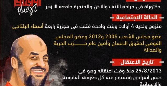 فيما حملت حركة نساء ضد الانقلاب السيسي مسئولية سلامة حياة الدكتور " محمد البلتاجي " نائب الشعب وأحد رموز ثورة يناير القابع في السجن منذ الانقلاب العسكري وابنه " أنس " وجميع المعتقلين من قيادات الإخوان الذين يتعرضون للموت البطىء جراء الإهمال الطبي المتعمد داخل السجن .