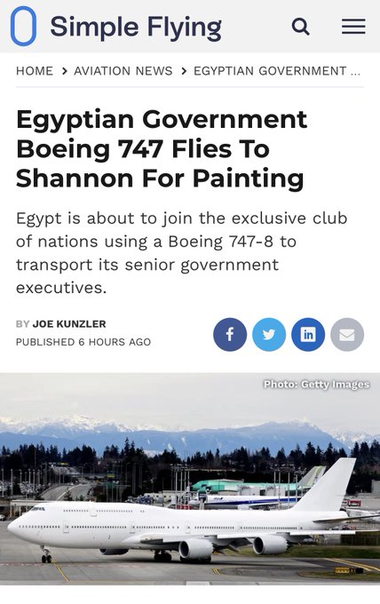 وأشار إلى أن حصول مصر على الطائرة بوينج ٧٤٧ كطائرة جديدة للرئاسة. وليس من الطبيعي أن تكون للوزراء كما يقول الخبر.