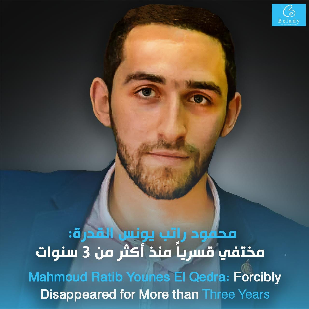 أكدت منظمة بلادي جزيرة الإنسانية على استمرار جريمة المواطن محمود راتب يونس القدرة منذ أكثر من 3 سنوات ، وطالبت سلطات النظام الانقلابي في مصر بالإفصاح عن مكان تواجده، وإطلاق سراحه بشكل فوري وغير مشروط.
