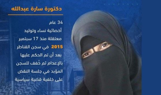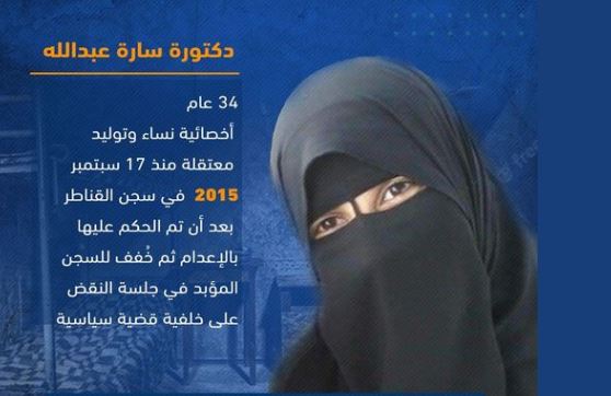 كانت قوات الانقلاب قد اعتقلت الدكتورة سارة وشقيقتها ووالدهما في 17سبتمبر 2015 من سيارتهم بكمين بطريق إسكندرية الصحراوي ، ثم أطلق سراح والدهما وحكم على سارة بالمؤبد في قضية عسكرية ، وشقيقتها رنا بالسجن ثلاث سنوات ، تعرضت سارة للإخفاء القسري وللتعذيب أثناء التحقيق للاعتراف بتهم ملفقة ، حتى تدهورت حالتها الصحية والنفسية ورغم مناشدات أسرتها وصرخاتهم للإفراج عنها ، مازالت محبوسة تعاني الظلم والقهر والحسرة على ضياع زهرة شبابها خلف القضبان ، بحسب ما ذكرته حركة نساء ضد الانقلاب عبر حسابها على فيس بوك .