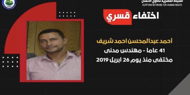 تواصل سلطات الانقلاب جريمة الإخفاء القسري للعام الرابع بحق المهندس أحمد عبد المحسن أحمد شريف 42 عاما، منذ أن تم اعتقاله تعسفيا يوم 11 فبراير 2019 من أحد شوارع مدينة الشروق دون سند من القانون.