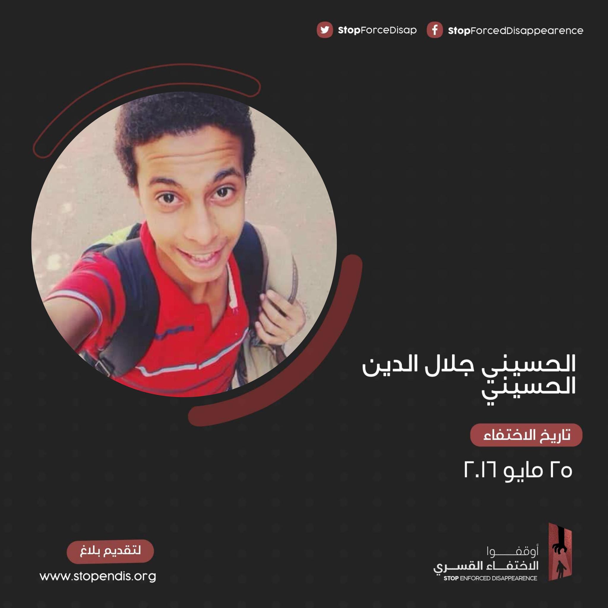 وطالبت حملة أوقفوا الاختفاء القسري برفع الظلم الواقع على المختفي قسريا الشاب الحسيني جلال الدين الحسيني أمين عبد الغني من أبناء قليوب محافظة القليوبية منذ أن تم اعتقاله من أمام سنتر تعليمي بمنطقة فيصل قبل امتحانات الثانوية العامة بأسبوع  بتاريخ 25 مايو 2016 وكان وقتها في عمر 17 عاما، حيث تم اقتياده لجهة مجهولة حتى الآن .