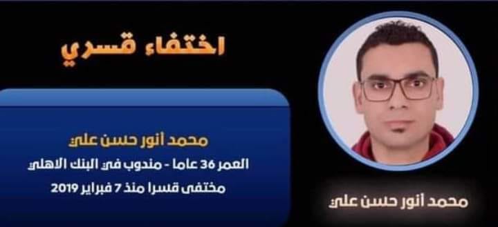 وفي وقت سابق وثقت العديد من المنظمات الحقوقية استمرار إخفاء المواطن المواطن محمد أنور حسن علي، 36 عاما، منذ أن تم اعتقاله بواسطة قوات من أمن الانقلاب بالجيزة، مدعومة بقوات من الأمن الوطني، عصر يوم السابع من فبراير 2019 أثناء مروره من أمام أحد الأكمنة الأمنية على الطريق الدائري بمنطقة المريوطية بمحافظة الجيزة، وجرى اقتياده إلى مكان غير معلوم، لتنقطع أخباره منذ ذلك اليوم.