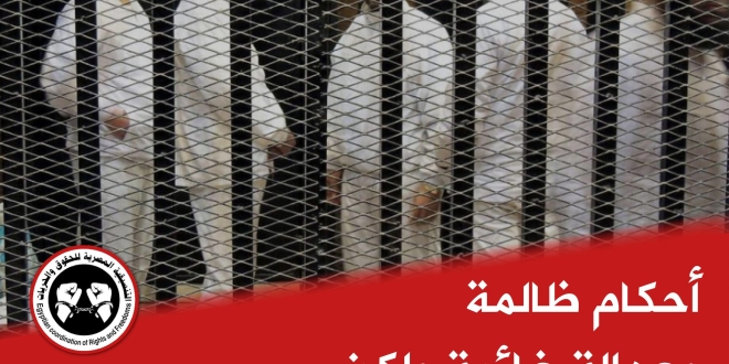 وأشارت إلى أن رفضها للأحكام القاسية جاء كونها صادرة وفقا لمحاكمة غير عادلة لم يتوفر للمتهمين أدنى مقومات العدالة بدءا من اعتقال تعسفي وإخفاء قسري لفترات مختلفة وما تعرض له كثير منهم من تعذيب خلالها مثبت في المحاضر، وما تلا ذلك من حبس احتياطي تخطى المدد القانونية وصاحبه منع الزيارة لسنوات وتضييق في التواصل مع المحامين يصل للمنع، وإهمال طبي للبعض أدى لتدهور الحالة الصحية لعدد منهم على رأسهم هدى عبد المنعم وعائشة الشاطر وصولا لمحاكمات تهدر فيها الأدلة ويستعان بشهادات مرسلة لتكون النهاية بأحكام غاية في القسوة لعدد كبير بدأت بخمس سنوات لتصل إلى المؤبد للبعض دون منطق أو رحمة.