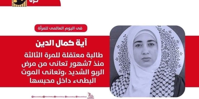 وحملت الحركة السيسي مسئولية سلامة حياة آية وجميع الفتيات المعتقلات في السجون ظلما وعدوانا، واللاتي يعانين الموت البطئ جراء الإهمال الطبي المتعمد .