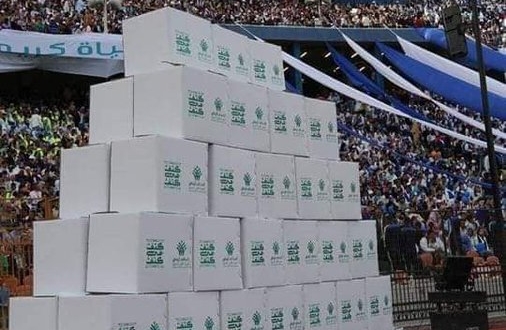 وقال أدمن قناة الشعوب “هنعيش على المعونات والشحاتة، السيسي يقيم حفلا كبيرا في استاد القاهرة لتوزيع كراتين مساعدات غذائية على الشعب المصري”.