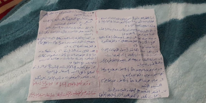 حيث ذكرت الرسالة أنه ” يتم بيع زيت التعيين من قبل المأمور ورئيس المباحث للمساجين بسعر ٦٠ جنيها للزجاجة ويمنع صرف تعيين الزيت للمساجين رغم أنه كان يصرف كل ٣ أيام زجاجة للغرفة الصغيرة و الغرفة الكبيرة ٢ زجاجة كل ٣ أيام .