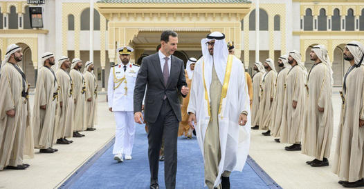 وبدأ التحول رسميا عندما زار بشار الأسد حاكم أبوظبي محمد بن زايد في 19 مارس، واعتبرت الزيارة المعلنة على أنها أحدث إشارة على أن الديكتاتور السوري يُعاد تأهيله رويدا رويدا عن طريق نظرائه في المنطقة.