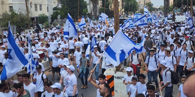 وشارك مستوطنون في مسيرة الأعلام في مدينة اللد، اليوم الخميس، ونظمت المسيرة مجموعات من المتطرفين اليهود وما تسمى “النواة التوراتية”، ورفعوا الأعلام الإسرائيلية، ورددوا هتافات عنصرية، في شوارع عدة باللد.