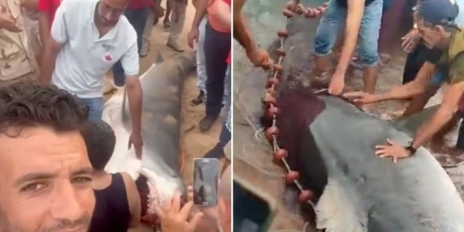 ويظهر مقطع فيديو تمت مشاركته على نطاق واسع عبر الإنترنت القرش بعد أن تم القبض عليه من قبل الصيادين ، بتوجيه من خبراء بحريين محليين. يظهر أحد المقاطع رجلا يلكم القرش على سطح قارب.