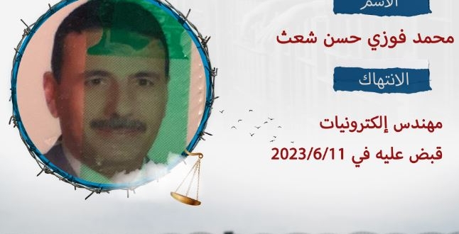 ورصد مركز الشهاب لحقوق الإنسان اعتقال المهندس ”محمود فوزي حسن شعث“ من داخل منزله بكامب شيزار محافظة الإسكندرية منذ يوم 10 يونيو الجاري دون سند من القانون .