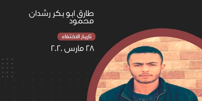 تستمر جرائم نظام السيسي ضد المصريين، مع ارتفاع أعداد المختفين قسريا بعد اعتقالهم بشكل تعسفي بالعديد من محافظات الجمهورية، ورصدت حملة “أوقفوا الاختفاء القسري” استمرار رفض سلطات الانقلاب الكشف عن مصير طالب الفرقة الثانية بالمعهد العالي للتكنولوجيا والحاسبات طارق أبو بكر رشدان محمود، من أبناء بئر العبد، شمال سيناء منذ اعتقاله في 28 مارس 2020.