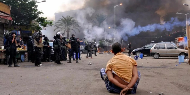 وأوضح الموقع أنه بعد وقت قصير من شروق الشمس في ذلك اليوم المشؤوم، ازدحمت قافلة من المركبات العسكرية المدرعة بالساحة، وهي واحدة من أكثر الطرق ازدحاما في القاهرة، وأغلقت جميع المخارج الرئيسية للاعتصام، باستخدام العربات المدرعة والقناصة والذخيرة الحية، قتلت القوات المصرية ما لا يقل عن 817 شخصا في رابعة و87 آخرين في ميدان النهضة، وفقا لمنظمة هيومن رايتس ووتش.